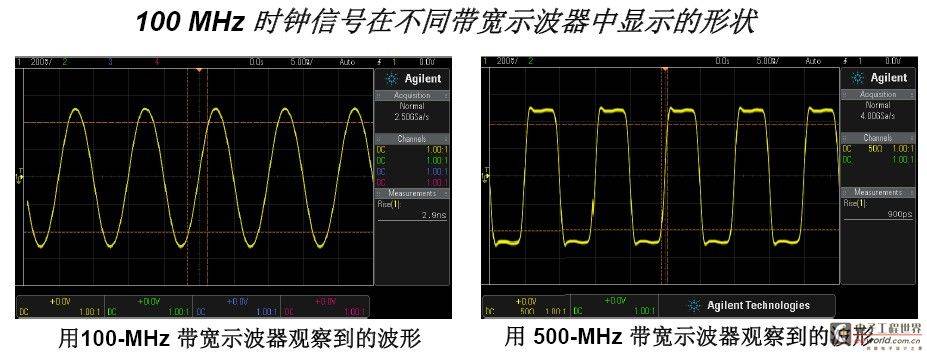 示波器還會(huì)有獨(dú)立的帶寬和上升時(shí)間極限值。通常認(rèn)為示波器和探頭的帶寬大小應(yīng)該相等。但是,示波器帶寬和探頭帶寬的關(guān)系并非如此簡(jiǎn)單。