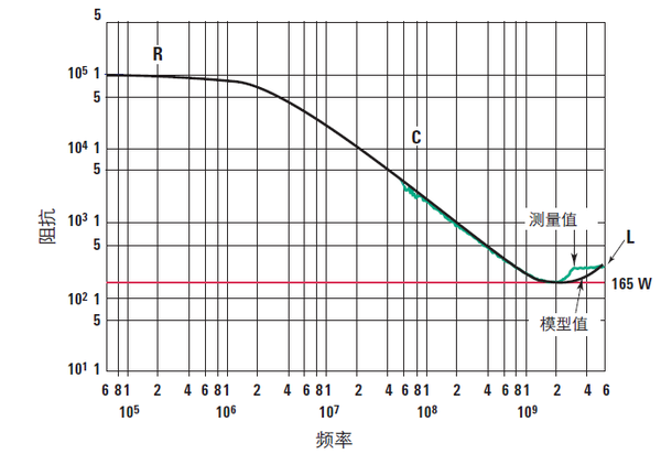 圖 4 顯示了高達(dá) 6 GHz 的 1158A 探頭輸入阻抗。您可以看到在 1-MHz 以下的低頻階段中,探頭輸入阻抗主要由探頭直流電阻分量決定(100 kΩ)。隨著信號(hào)頻率的提高,電容電抗逐漸成為影響電路負(fù)載的主要分量。在 2-GHz 時(shí), 1158A 的阻抗達(dá)到最低水平 165-Ω,此值由探針電阻器決定。